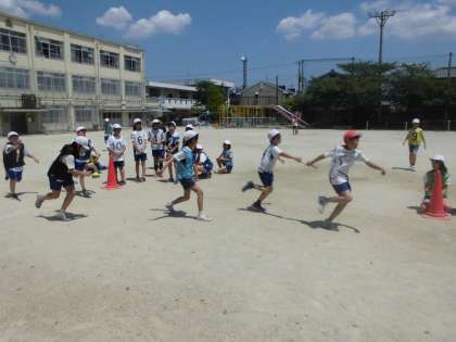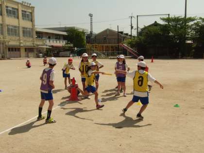 運動会での「リレー」で,素晴らしいバトンパスが見せられるよう,体育の学習で取り組んでいきます。