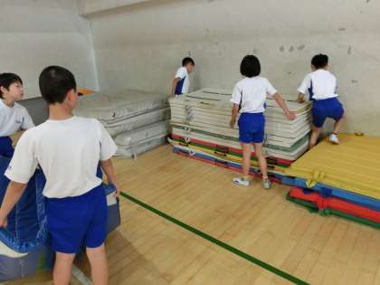 片づけのときには、マットの端をそろえて・・・準備・片づけもばっちりです!