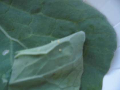 今朝キャベツを見るとモンシロチョウのたまごがいっぱいうみつけられていました。