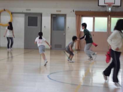 第1回目は学校の体育館でボランティアのお兄さんお姉さんたちと