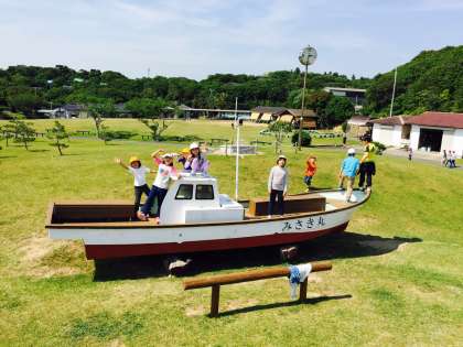 芝生広場では、遊具で遊んだり、船に乗ったり。