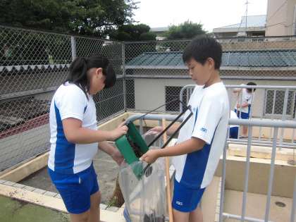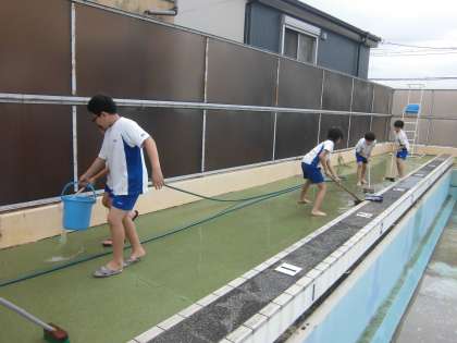 全校のために,プール清掃を頑張った5年生。