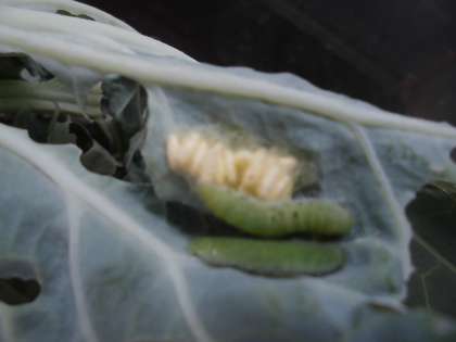 教室にキャベツを持ってきて、卵→幼虫→サナギ→成虫 の成長の流れを見るためです。