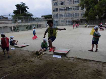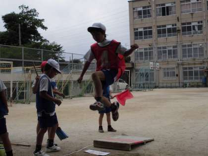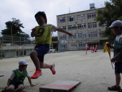 助走を大切に、ふみきり板で〜ジャンプ!!