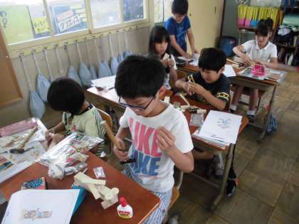 細かな材料を準備している児童もいます。(コップや木、ペットボトルキャップなど)