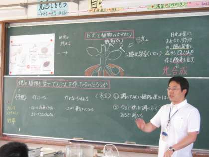 光合成の勉強と,ヨウ素液を使ってどのようなものにでんぷんが含まれて入るのか調べました。