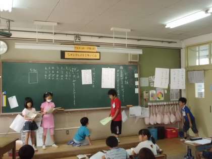 2年生は「お手紙」をテーマに、かえるくんやかたつむりくん、がまくん、ナレーターになりきって音読劇をしました。