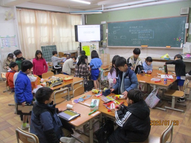 国語ではiPadを使って学習しました。図画工作では意欲的に取り組みました。