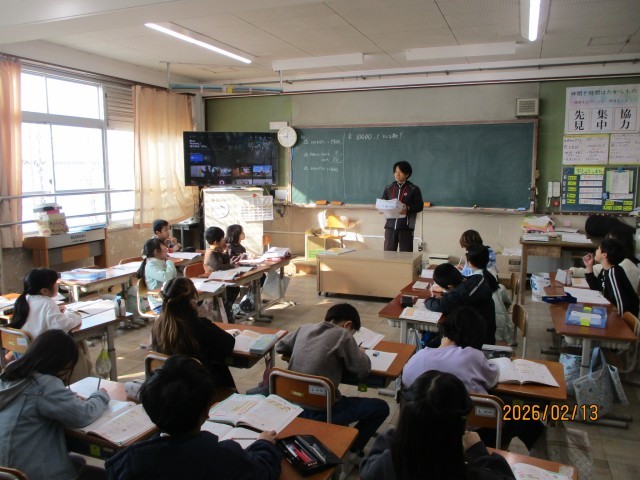 算数では大きな数について考えました。実際に1万枚の紙を持ってみました。国語では図書館に行って読書をしました。