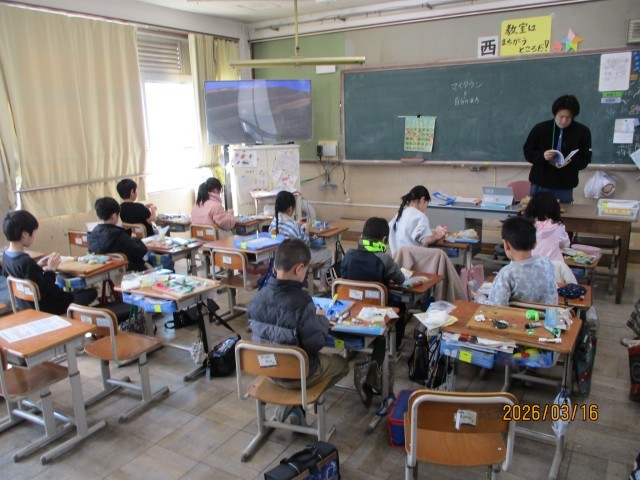 総合的な学習の時間では1年間の振り返りをしました。図工では粘土で自分だけの街を作りました!