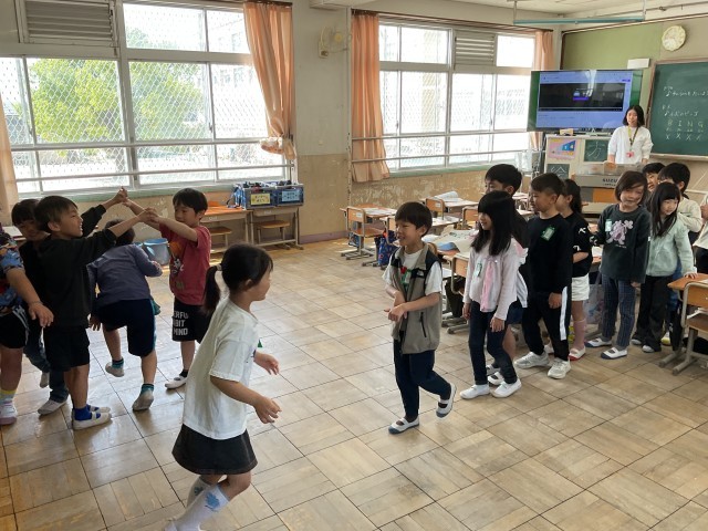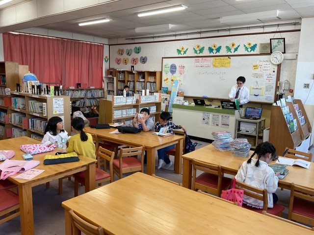 音学ではリズムに合わせて体を動かしました。国語では図書館で読書をしました。