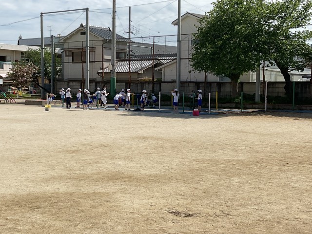 算数では意欲的に学習しました。体育では運動場で鉄棒をしました。