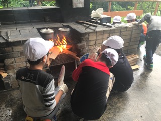 野外炊事にチャレンジしました。今日は,カレーライスを作りました。薪をくべて火を起こし,飯盒でご飯も炊きました。慣れない手つきでしたが,汗をかきながらみんなが力を合わせて作ることができました。さて,お味の方はどうだったでしょう?