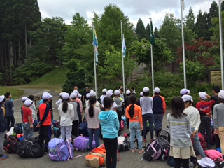 退所式を行っています。4日間お世話になった山の家とも,いよいよお別れです。