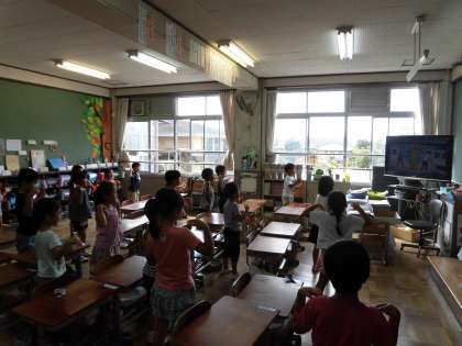 朝の会の時間をつかって,ビデオを見ながら練習しています!