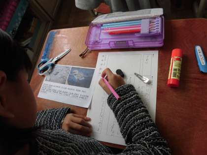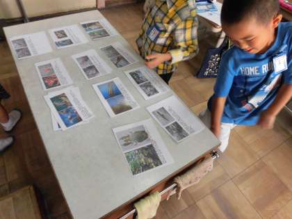 自分の選んだ生き物がどのように自然に溶け込んで隠れているのかを,文章から読み取ってカードに書いています。