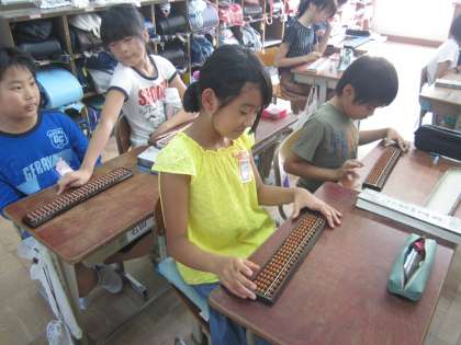 3年生にしたそろばんの使い方や簡単な計算の仕方を思い出しながら取り組みました。