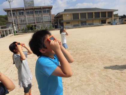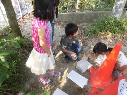 理科では,遮光板を使って太陽の動きを見たり,温度計で日なたと日かげの地面の温度を調べたりしました。太陽が東→南→西へと動くことや,日かげより日なたの方が太陽で温められて温度が高いことなどが分かりました。子ども達は,楽しく実験をしていました。
