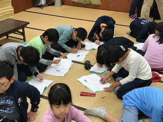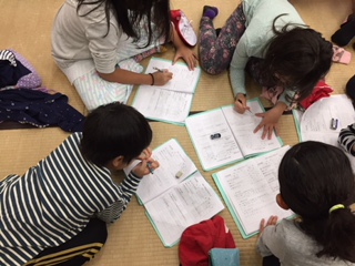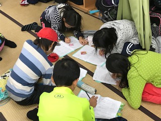 ナイトウォークの後は,反省会です。グループ毎に一日の振り返りをしました。子どもたちはみんな熱心に一日の出来事を書き留めていました。