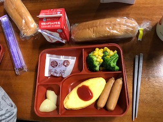 今日の朝ごはんです。子ども達はもりもり食べています。