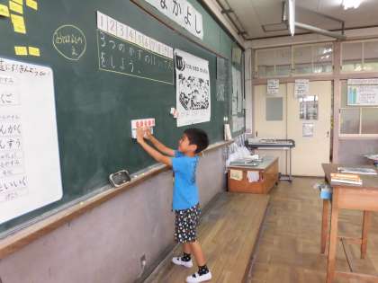 算数科では「3つのかずのけいさん」を学習しています。この計算は,繰り上がり・繰り下がりの計算につながる大事な学習です。
