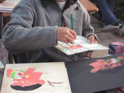 一版多色刷に挑戦している5年生。