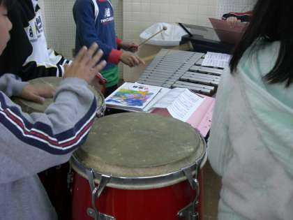 音楽では,グループ合奏に取り組んでいます。各クラス3つのグループに分かれて「木星」「コンドルは飛んで行く」「トップオブザワールド」をそれぞれ練習しています。