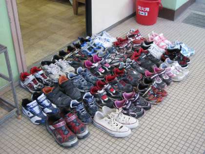 教室の入り口には,誰が気づいて揃えてくれたのでしょうか。