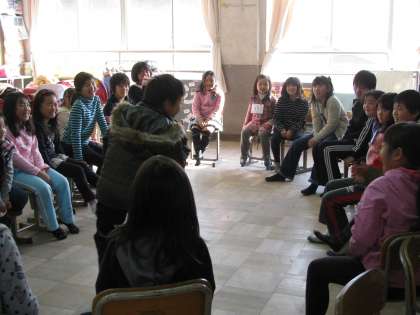教室の中では,椅子取りゲーム,ボール回しなどみんなが輪になって楽しんでいました。