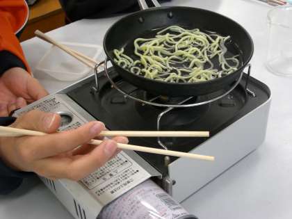 理科の時間です。今日の学習は「やきそばをつくろう」。