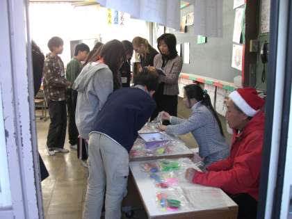 ALTや担任とのやりとりをして,思い思いの材料を集めてかわいいクリスマスカードを作りました。