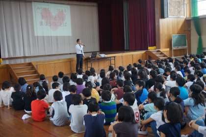 5月1日に朝会がありました。学校長から3日が憲法記念日なので,憲法や基本的人権のこと等,一人一人を大切にすることについてお話がありました。いじめは絶対許さないというお話もあり,「いじめ防止対策委員会」のメンバーの教職員の紹介もありました。