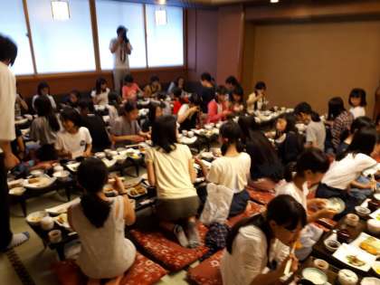 元気にご飯をいただいています。味噌カツも美味しいです。おなかいっぱい食べましょう!