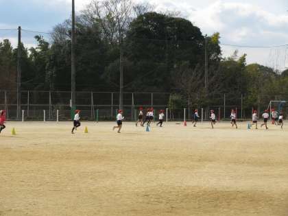 運動場では,4年生が,体育の授業で持久走に取り組んでいます。