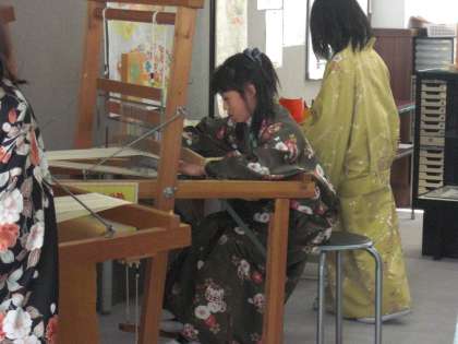 西陣織体験のコーナーで,教えてあげたり,西陣織の作り方などを説明したりしました。