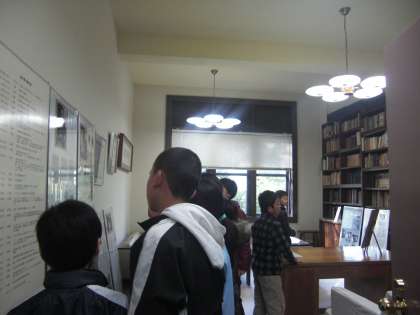 湯川博士が研究をされていた部屋を見学しました。本や,机,いすなどもあり,みんな興味津々でした。