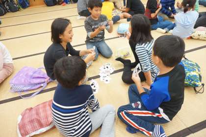 今日は1組からお風呂に入ります。待っている間は90畳の部屋でトランプやウノのゲームで盛り上がっています!