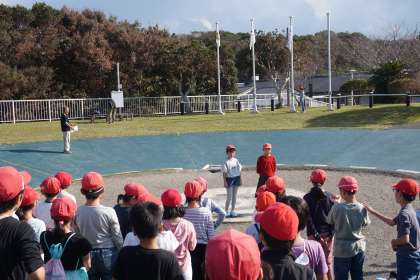 退所式は昨夜みんなで盛り上がった営火場でしました。みさき家の職員の方にお礼を言ってバスで出発しました。