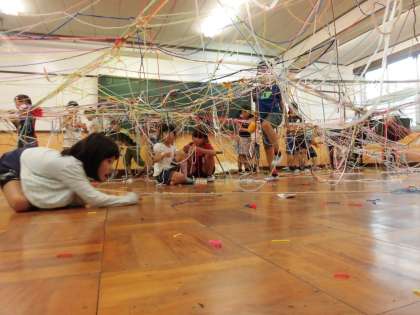好きなところに,好きなだけ。ひもをつないでいくだけの作業でしたが,子どもたちは思いっきり楽しんでいる様子でした。
