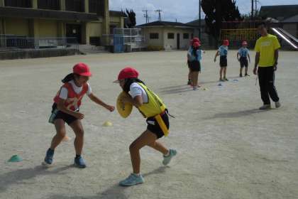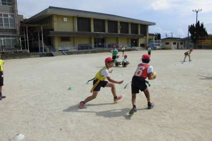 フェイントを使って相手を抜いたり、タグを取ったり、楽しく活動することができました。