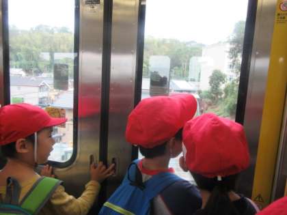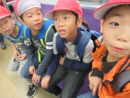 電車の窓から「何がみえるかな。」と景色を楽しんだり,「あといくつで着く?」とわくわくしたりする姿がありました。