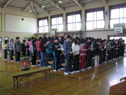 第1回目ですが,6年生123名,担任達もマイクを使わず,静かな声で指導を進めることができるほど,整然と練習が進んでいます。