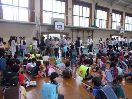 4校時の避難訓練では,災害時に帰宅困難となったことを想定して,2次避難後の保護者への引き渡し訓練を行いました。多くの保護者の方が,引き渡し訓練に参加してくださったおかげで,実際を想定した良い訓練ができました。