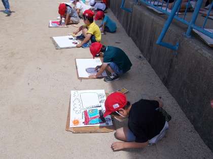 5月30日に火災の避難訓練がありました。南浜消防出張所の消防隊員の方が救助工作車という消防車で来てくださいました。目の前で消防車を見ることができる貴重な機会だったので,1年生は避難訓練のあと消防車の絵をかきました。