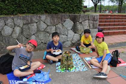 晴天の中,横大路公園でみんなでお昼ご飯を食べました。