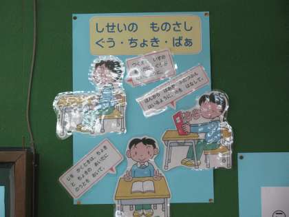 発達段階に応じた掲示物を作成し,教室前面の壁面に常掲して,共通実践を進めています。