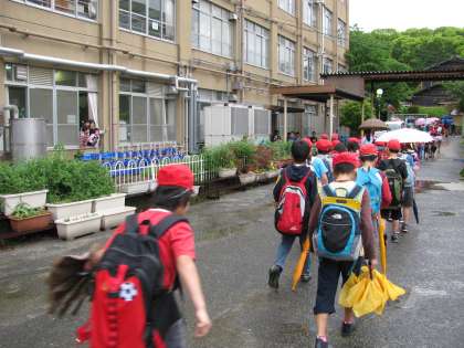 おひさま学級のみんなが先生と一緒に,窓から「いってらっしゃ〜い。」と手を振ってくれる中,4年生が社会見学へ出かけました。
