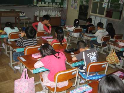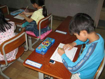 学校探検のことを思い出しながら,書いていました。とても楽しかったようで,にこにこしながら書いていた1年生です。
