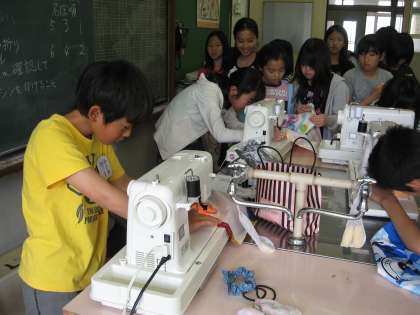 6年生は,家庭科「生活に役立つものをつくろう」で,エプロンを作り始めています。