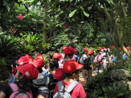 お天気にも恵まれ、元気に植物園に行ってきました!!グループごとにウォークラリーをしたり、温室を見学したり、園内の自然を楽しみました。ウォークラリーでは自分たちで地図を見ながら、各ポイントに行ってクイズを解いていきました。「水車はとけいまわりだ!」「ふん水は、どこにあるんやろ。」グループで協力して楽しく活動することができました。